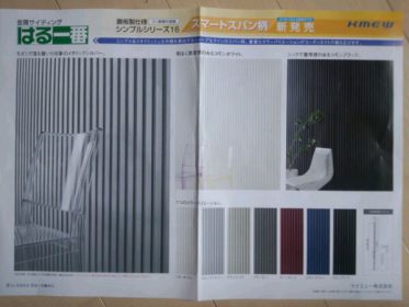 今、材料屋さんが新商品ですとカタログを持ってきてくれた。はる一のガルスパンタイプのようです。 新鮮さは無いですね。でもアイジーがフッ素塗装になると言う情報を聞きました。 フッ素塗装やっぱりいいですね!