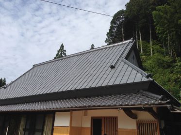 以前カバー工法でリフォームした屋根が劣化してしまったので一度はがして カバー工法しました。 今回は、高耐久のガルバリウムで施工しましたので 安心していただけました。